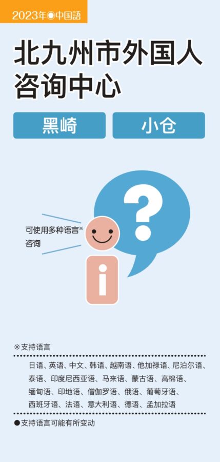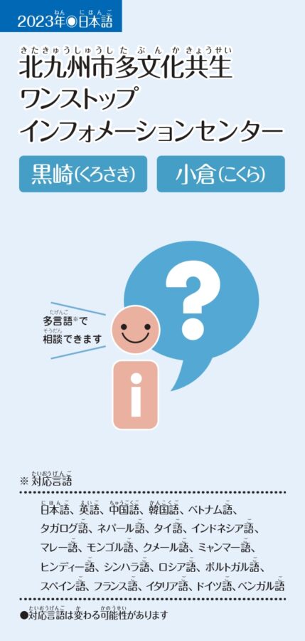 北九州市内のボランティアによる日本語教室のご案内です。※時間・場所・連絡先は変更になることがあります。※2ページ表記推奨