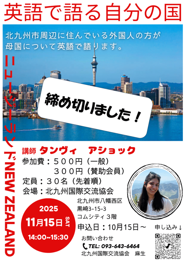 北九州市周辺に住んでいる外国人の方が講師となり、母国について英語で語る講座です。さまざまな国の文化や生活を、