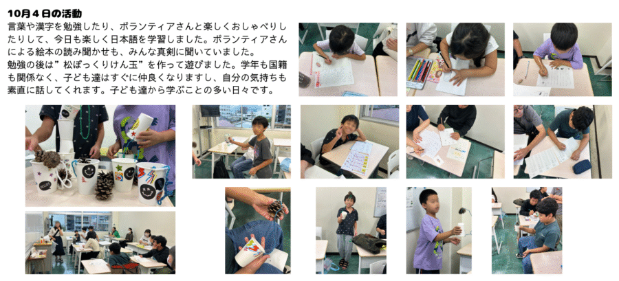 日本語や教科の日本語を学ぶだけでなく、遊びを通して他の国の子どもたちとの交流を持つこともできました。