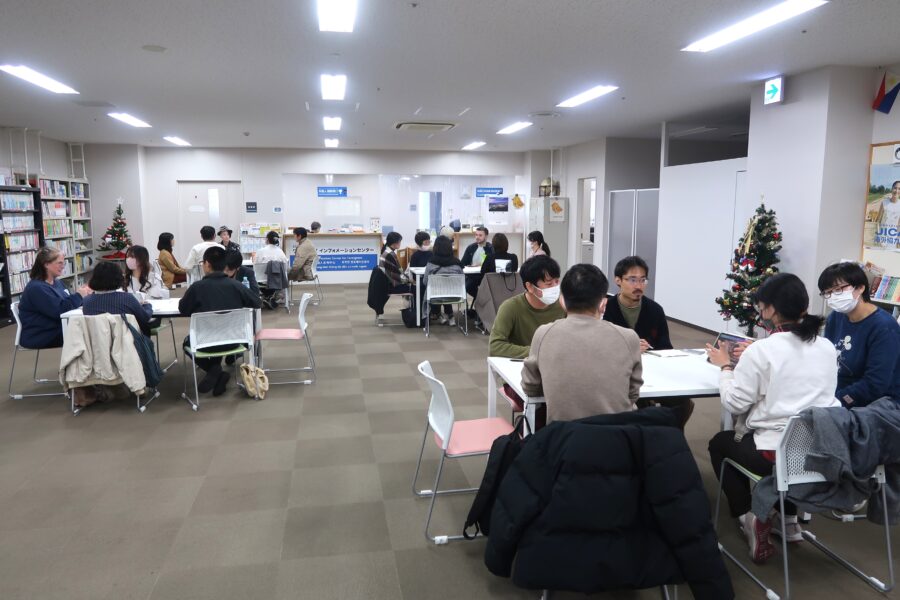 | 내용 | 12월 21일(토)에 “국제 교류 크리스마스 파티”를 개최했습니다. 약 60명이 참가해 게임이나 프리 토크는 물론, 이번에는 여러분과 함께 캐럴송을 부르거나, 춤을 추거나, 빙고 게임을 하는 등 분위기가 한껏 고조되었습니다. 모두 신나게 놀고, 웃는 얼굴이 넘쳐나는 즐거운 시간을 보냈습니다. 산타클로스에게 선물도 받고 최고의 하루였습니다!! |