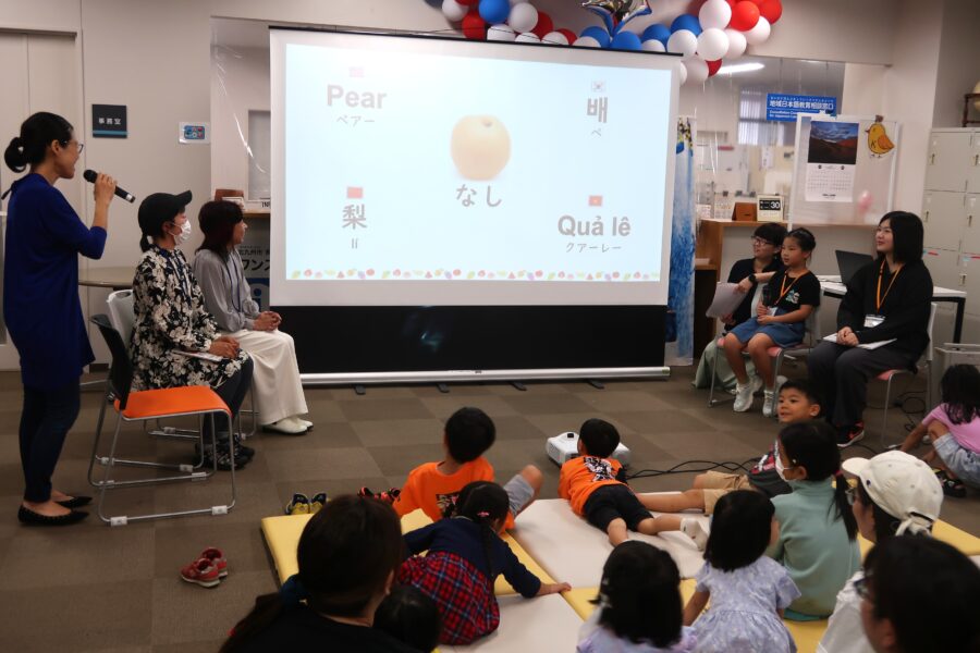 | Nội dung | Chúng tôi đã tổ chức một buổi kể chuyện đa ngôn ngữ do các tình nguyện viên đọc sách của Hiệp hội Giao lưu Quốc tế Kitakyushu thực hiện. Sau khi chơi các trò đố vui và học cách đếm số bằng nhiều ngôn ngữ trên thế giới, các tình nguyện viên đã đọc cuốn truyện ❝Bộ ba tuyệt vời❞. Trong thời gian đọc truyện, mọi người đã có một khoảng thời gian thật vui vẻ khi được trải nghiệm các trò chơi từ nhiều quốc gia trong chương trình hè và chơi trò ❝Karuta số❞ bằng nhiều ngôn ngữ khác nhau.♪ |