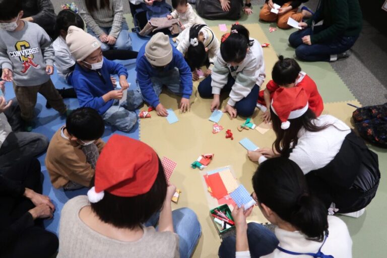 | Nội dung | Chúng tôi đã tổ chức buổi đọc chuyện đa ngôn ngữ với sự cộng tác của các tình nguyện viên của Hiệp hội giao lưu quốc tế Kitakyushu. Sau khi chơi trò đoán màu bằng nhiều ngôn ngữ, các tình nguyện viên đã đọc cuốn “Vị Khách Bí Ẩn Của Guri và Gura” (Soạn giả: Rieko Nakagawa và Yuryko Yamawaki của Nhà xuất bản Fukuinkan Shoten). Trong buổi đọc truyện, các em vui vẻ cùng nhau “Làm thiệp Giáng sinh bằng Origami” và “Chơi trò nói chuyện bằng nhiều ngôn ngữ” ♪ |